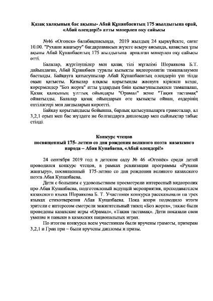 ШҚО білім басқармасы Өскемен қаласы бойынша білім бөлімінің «№46 «Огонек» балабақша-бөбекжайы» КМҚК