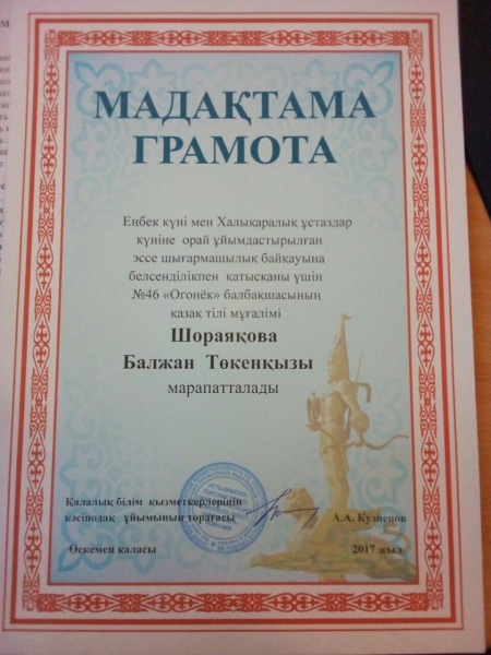ШҚО білім басқармасы Өскемен қаласы бойынша білім бөлімінің «№46 «Огонек» балабақша-бөбекжайы» КМҚК